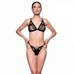 Le string harnais Aurèle combine également des détails sensuels à lanières avec des notes séduisantes de dentelle luxueuse dans un string sophistiqué. Le string harnais Aurèle est disponible en deux tailles ajustables. Consultez le tableau de tailles et d’entretien pour plus de détails. A associer aux autres produits de lingerie fine ou encore aux accessoires en cuir Asche & Gold .