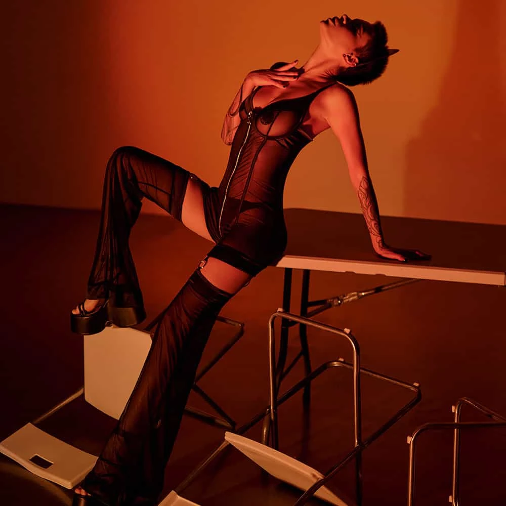 Cette collection “Party … stories” se compose de 3 ensembles, chacun des sets se compose d’une catsuit en résille haut de gamme et d’accessoires assortis qui changeront immédiatement votre routine quotidienne en une anticipation de fête. La provocation et la nature des tenues peuvent être modifiées avec les divers autres vêtements, chaussures et accessoires. Maintenant, vous pouvez être une “baed girl” hors de la maison !