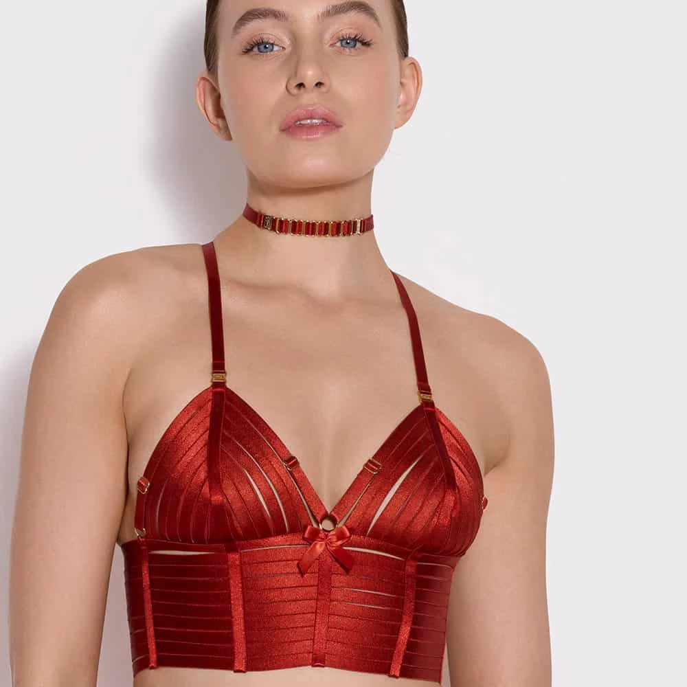Bondage-Belle Crop Top, issu de l’emblématique ligne de lingerie de créateur Signature, essence de la marque londonienne BORDELLE