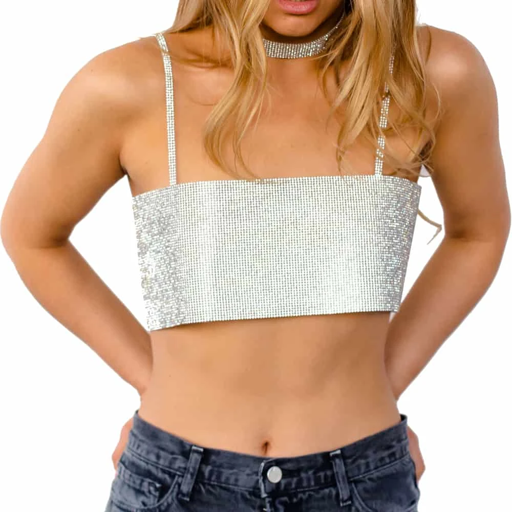 Dansez jusqu’au bout de la nuit avec le top Savor, une pièce d’inspiration vintage en cristal . Dos ouvert avec fermeture bijou. Le choker assorti est offert !