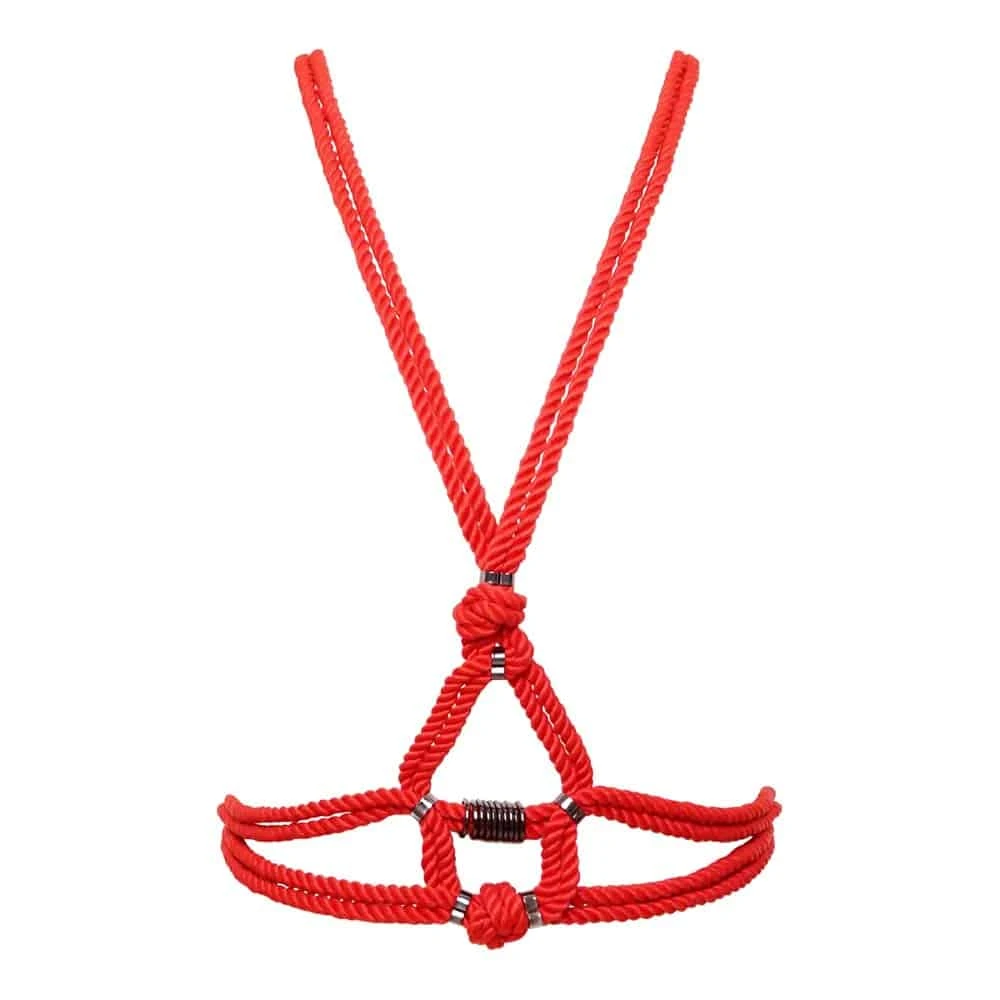 «Tazuki Shibari» signifie harnais croisé en japonais. Soigneusement attaché avec une corde de coton ciré et des finitions en alliage zinc et laiton;