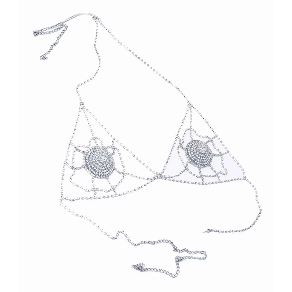 Laissez la starlette intérieure jouer et performer dans ce soutien-gorge ouvert tissé de cristaux telle une toile d’araignée.