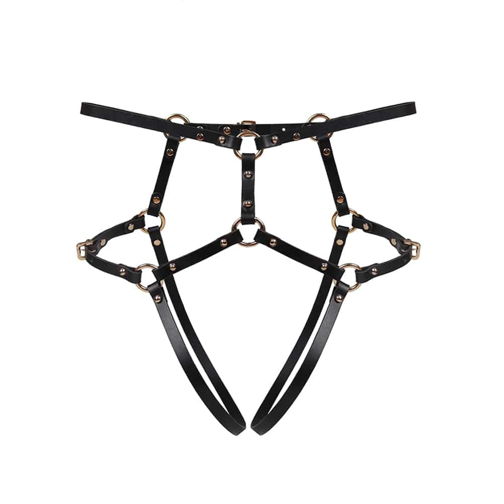 Anneaux et détails en métal plaqué or lui apporte la touche BDSM nécessaire.