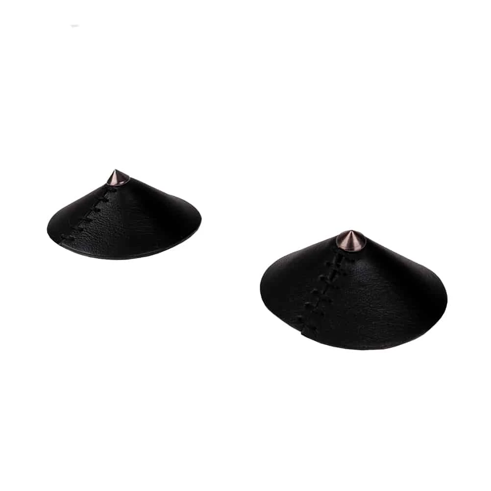 Rendez votre poitrine agressive et sexy avec ces sublimes pasties en cuir et plaqué or signé Elif Domanic.