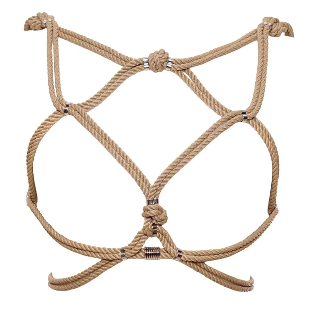 Traditionnellement, on utilise des longueurs de corde de fibre naturelle de 5, 6 ou 8 mm de diamètre. Les motifs géométriques réalisés à l’aide de la corde, contrastent joliment avec les courbes naturelles du corps. L’expérience de la ligature est toujours une collaboration entre le “rigger” et le modèle, dont le résultat peut explorer les notions de beauté visuelle, de sexualité, d’échange de pouvoir, de relaxation et de défis du corps.
