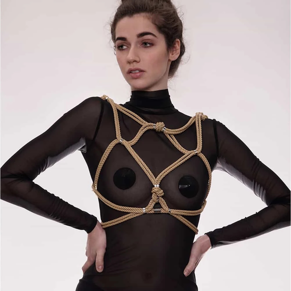 «Hoshi» signifie étoile en japonais, un motif souvent utilisé dans les harnais thoraciques Shibari. Soigneusement attaché avec une corde de coton ciré et des finitions en alliage zinc et laiton; Cette pièce forme un pentagramme sur la poitrine. Nœuds décoratifs sur le buste. Fermeture au dos. Une chaîne d’extension à l’arrière peut être ajoutée ou supprimée pour un ajustement personnalisé.