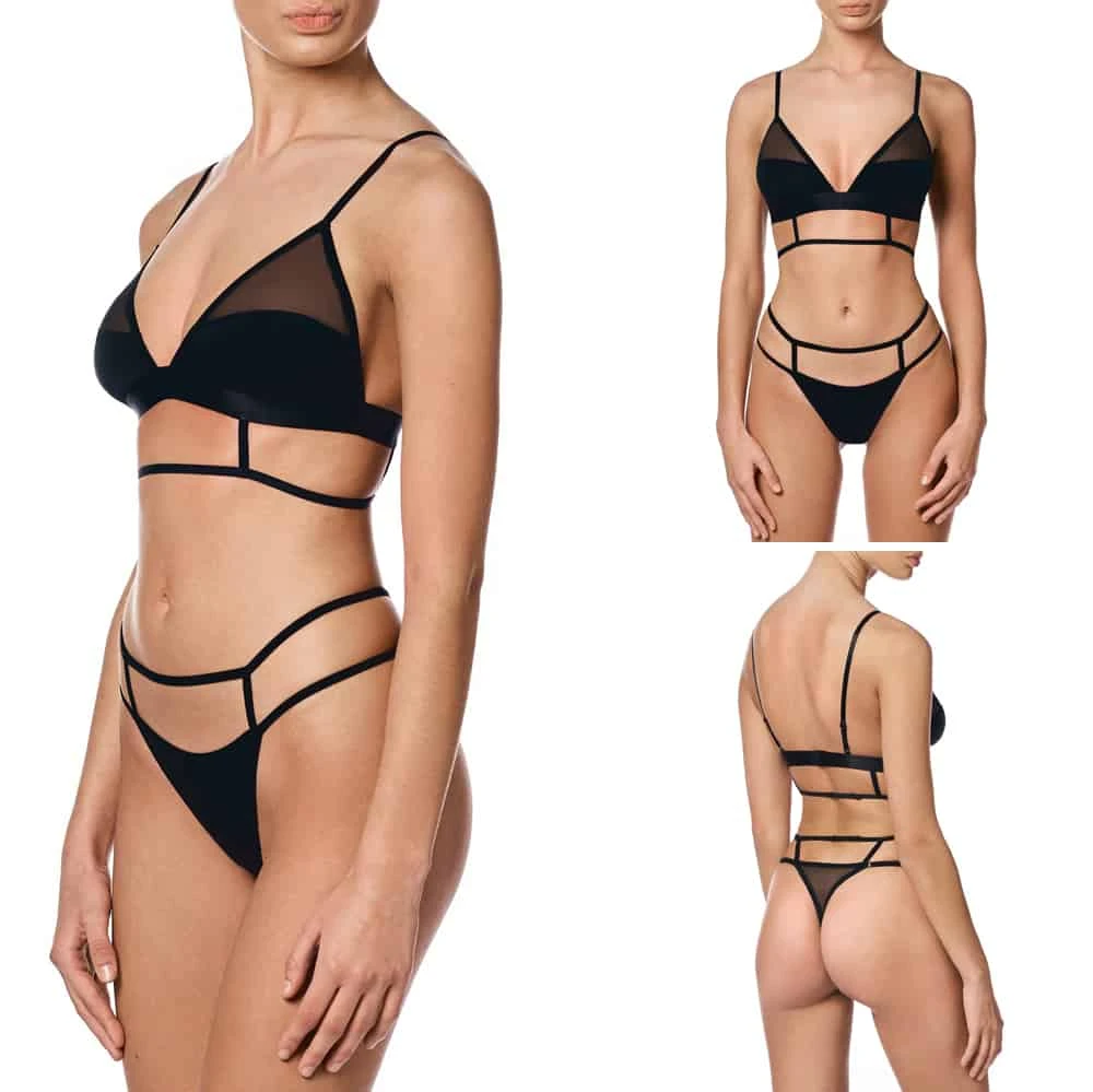 Son design mélangeant le coton et la résille transparente, ainsi que les détails de bandes élastiques donnent une touche bondage sexy à la pièce.