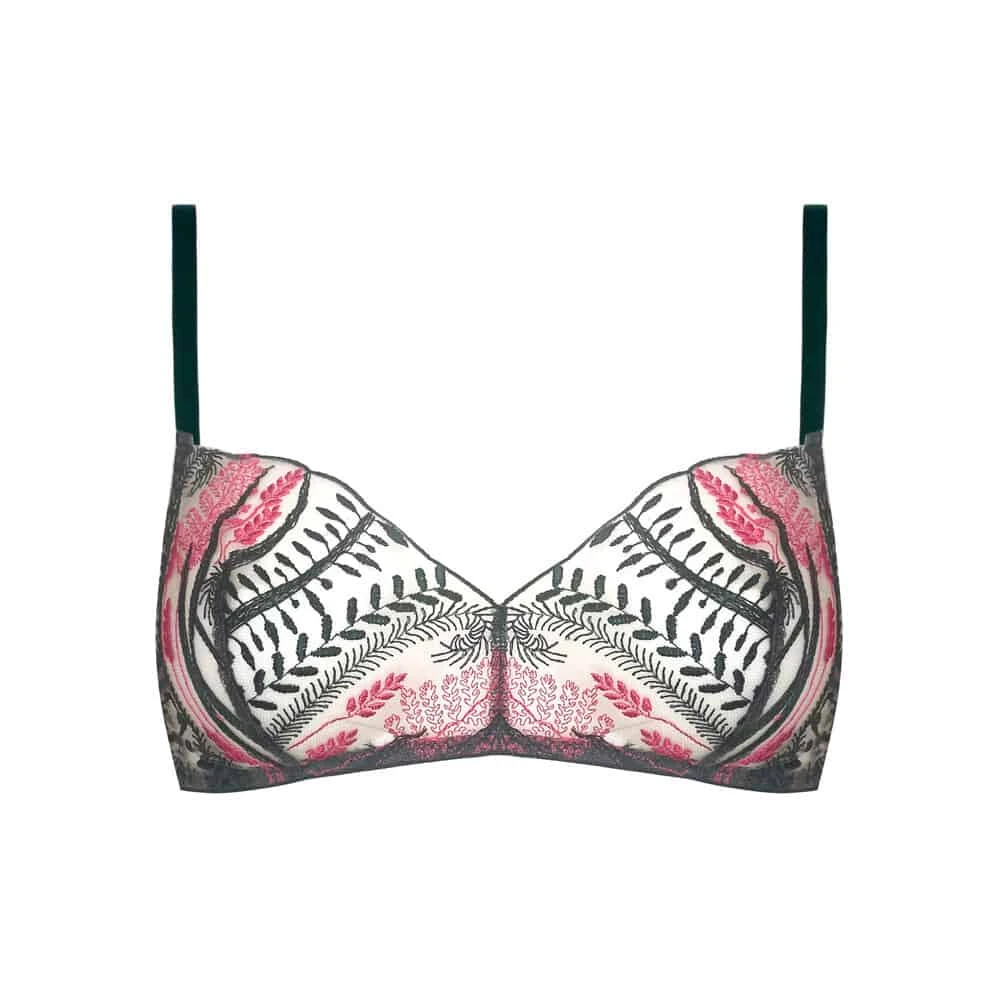 Telle une déesse de l’océan, retrouvez votre enchanteresse intérieure avec Alaria. La broderie inspirée des tiges vertes et rose vif des algues de l’océan surfe sur le tulle transparent et délicat. Décorez votre buste avec des algues feuillues et des tiges rose vif. La bralette Alaria est parfaite pour se prélasser et conçue pour le confort. Le dos a des bretelles réglables, vous assurant d’obtenir l’ajustement souhaité. Fermoir doré gravé Posie. Sentez vous en confiance avec le Soutien-gorge souple sans armatures Alaria Posie