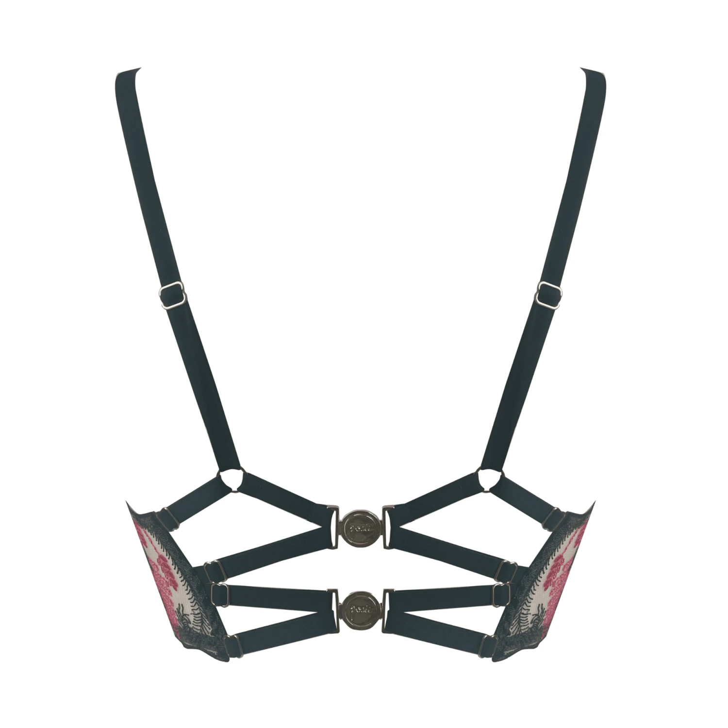Telle une déesse de l’océan, retrouvez votre enchanteresse intérieure avec Alaria. La broderie inspirée des tiges vertes et rose vif des algues de l’océan surfe sur le tulle transparent et délicat. Ce modèle bustier est le best seller de la marque de lingerie, un style qui offre une couverture complète, du confort et du maintien. Les bretelle au dos et sur les épaules sont entièrement réglables. Fermoir doré gravé Posie.