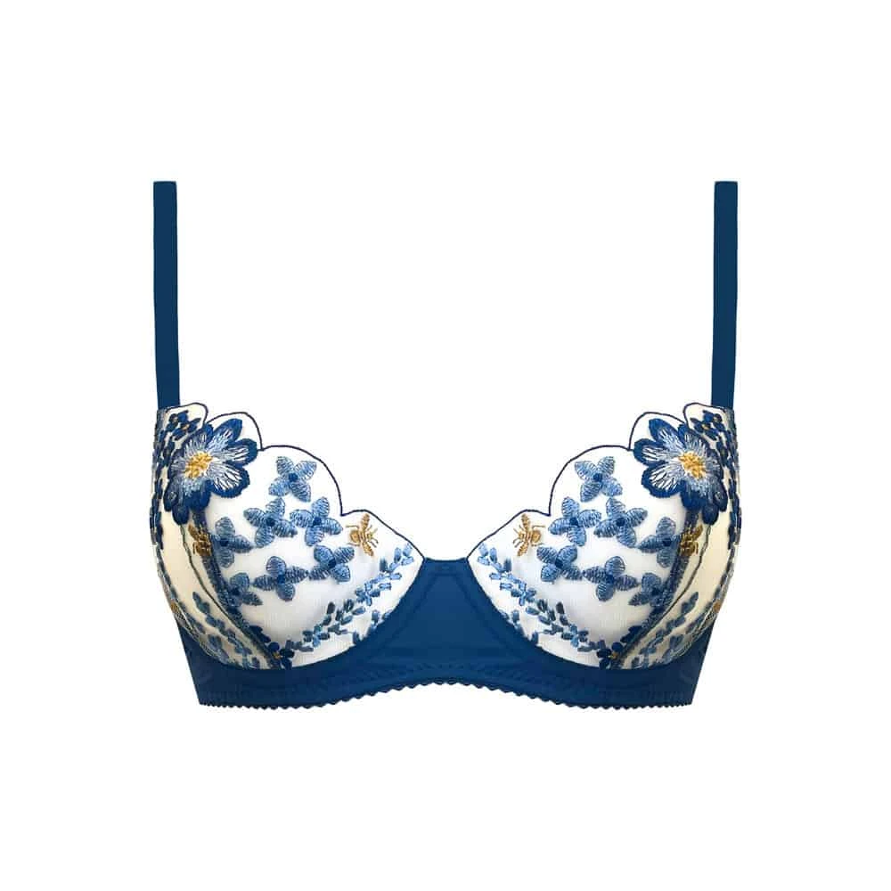 Basculez dans les champs de fleurs, où tout semble possible. Ce motif floral fantaisiste a été créé pour vous donner une source secrète de confiance. Le tulle discret est parsemé de broderie florale la plus douce avec des abeilles dorées cachées. Des tiges de délicates broderies recouvrent le buste, atteignant des fleurs d’électricité et de bleuet. La broderie contraste parfaitement avec la luxueuse soie de bambou, une alternative végétalienne à la soie conventionnelle. Le plongeant du soutien-gorge crée un soulèvement doux, offrant un excellent soutien et parfait sous les vêtements à décolleté plongeant. Le dos comporte des bretelles entièrement réglables et est fini avec un fermoir Posie en relief doré.